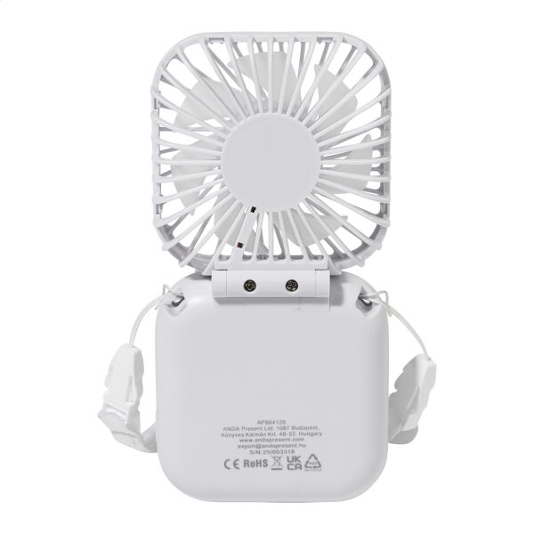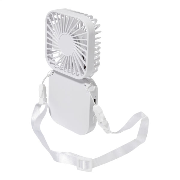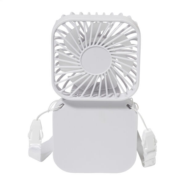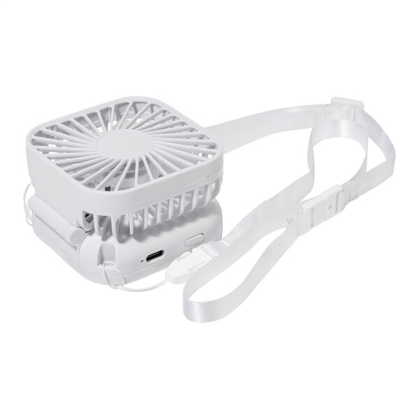 Gerecycleerde ABS elektrische handventilator met sleutelkoord en ingebouwde USB oplaadbare batterij (500 mAh). Met instelbare hoofdhoek en 3 snelheidsinstellingen. Inclusief USB lader kabel.
