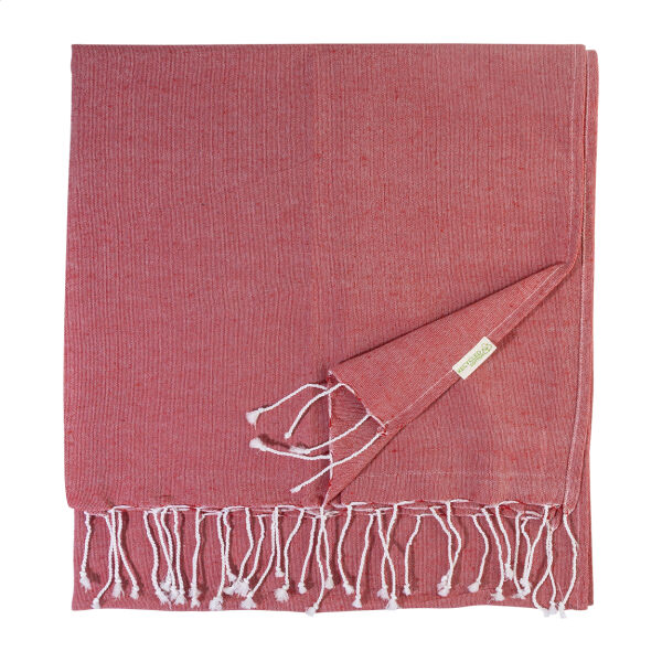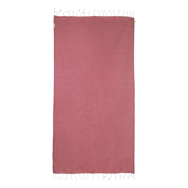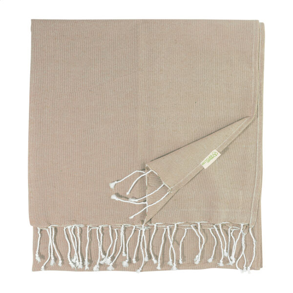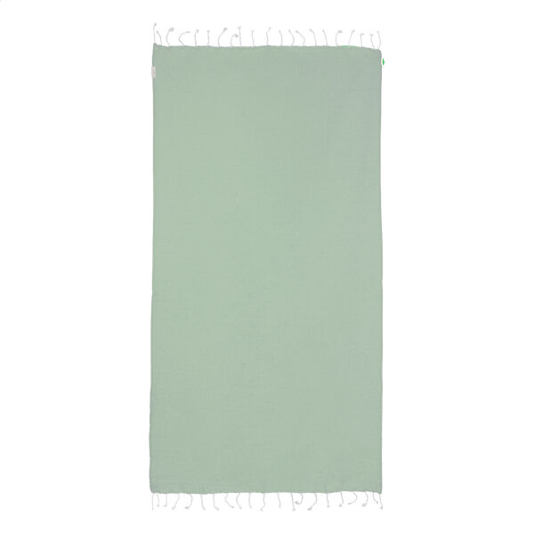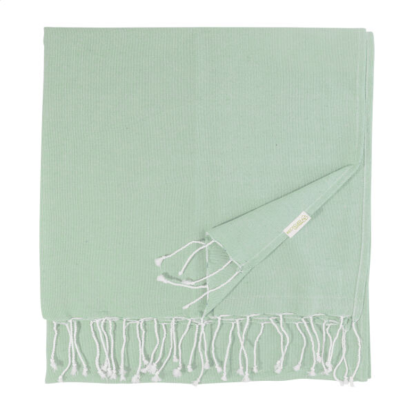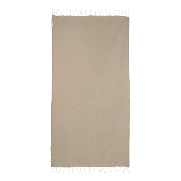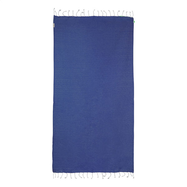 Omschrijving: Pareo strandlaken van 70% gerecycled katoen en 30% RPET polyester, 180 g/m²
